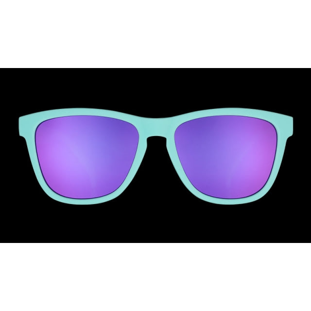 These dreamy teal and purple sunglasses will transport you to an otherworldy carnival of lights and dinos. These active shades have a grip coating and snug, lightweight fit that won't slip or bounce no matter how wild things get. Plus, the polarized purple lenses have UV400 protection.