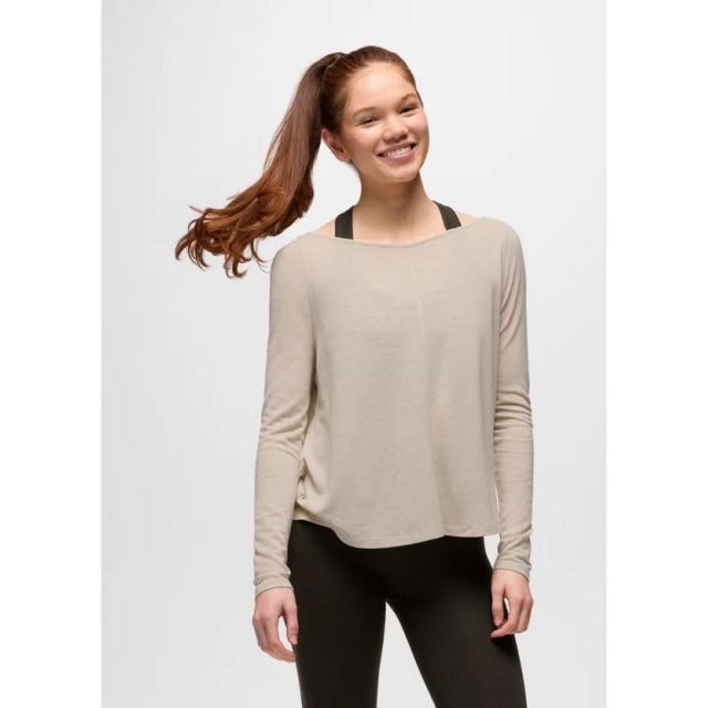 The New Moon Long Sleeve brings elegant drape to your yin yoga classes and errand-running mornings. Made with a soft hemp blend, it breathes easy and has an enzyme wash for a well-loved feel. Designed with front and back seams, a curved hemline, and a low back to highlight your favorite prAna bra tops.
